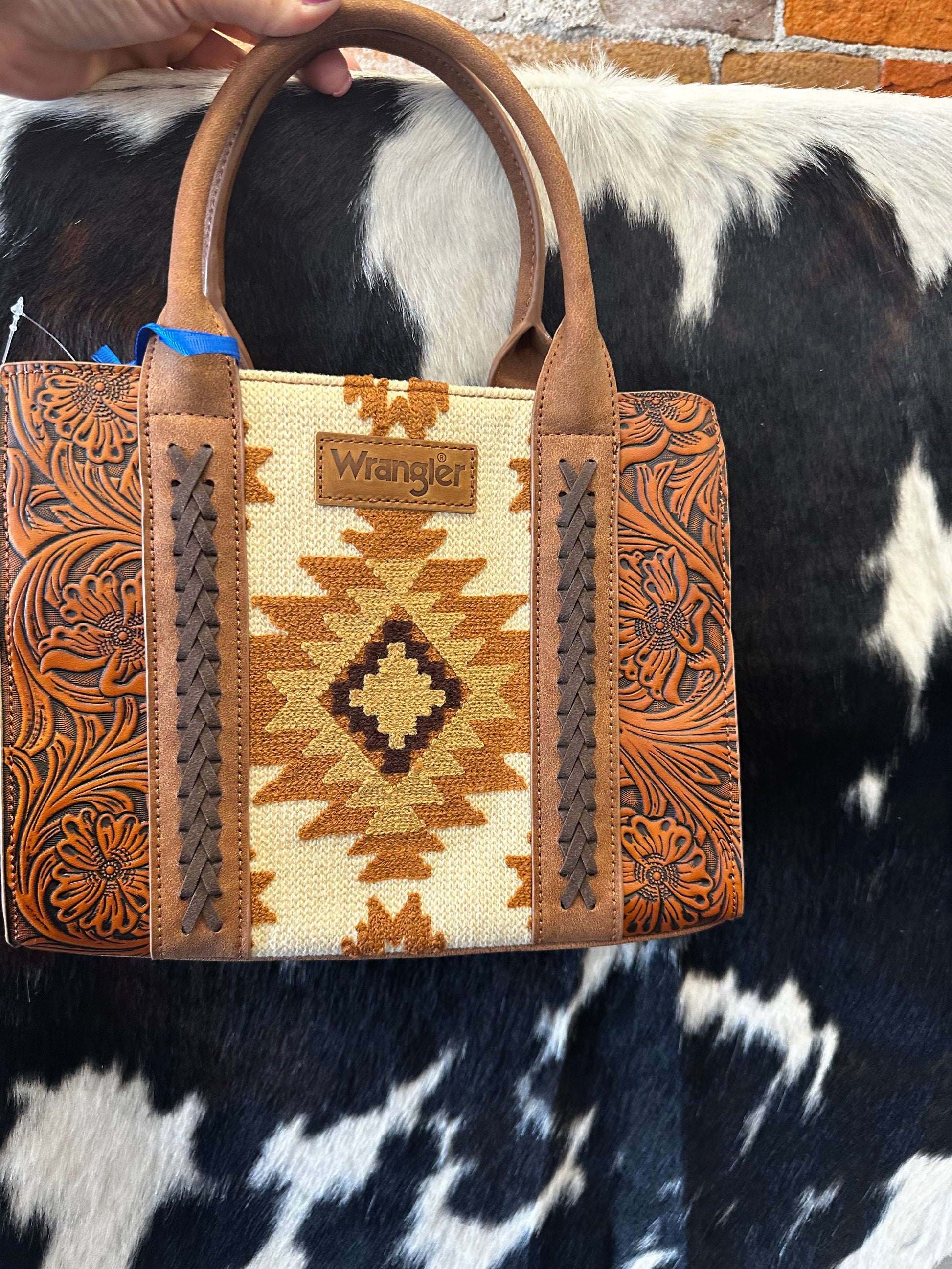 Wrangler Tooled Aztec Pattern Print Tote/Crossbody Bag